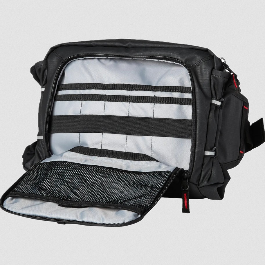 Gefertigt aus 600D Polyester mit integriertem Stauraum und Trinkflaschenhalter für optimale Versorgung unterwegs.