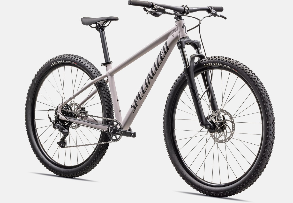 Die kräftigen Tektro HD-M275 Bremsen bieten Sicherheit bei jedem Wetter, während der komfortable Bridge Sport Sattel auch auf langen Strecken überzeugt. Der Alloy Mini Rise Lenker sorgt für optimale Kontrolle, ergänzt durch die griffigen Specialized Trail Grips. Die Fast Trak Sport Reifen bieten Traktion und Geschwindigkeit auf wechselndem Terrain.