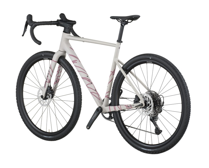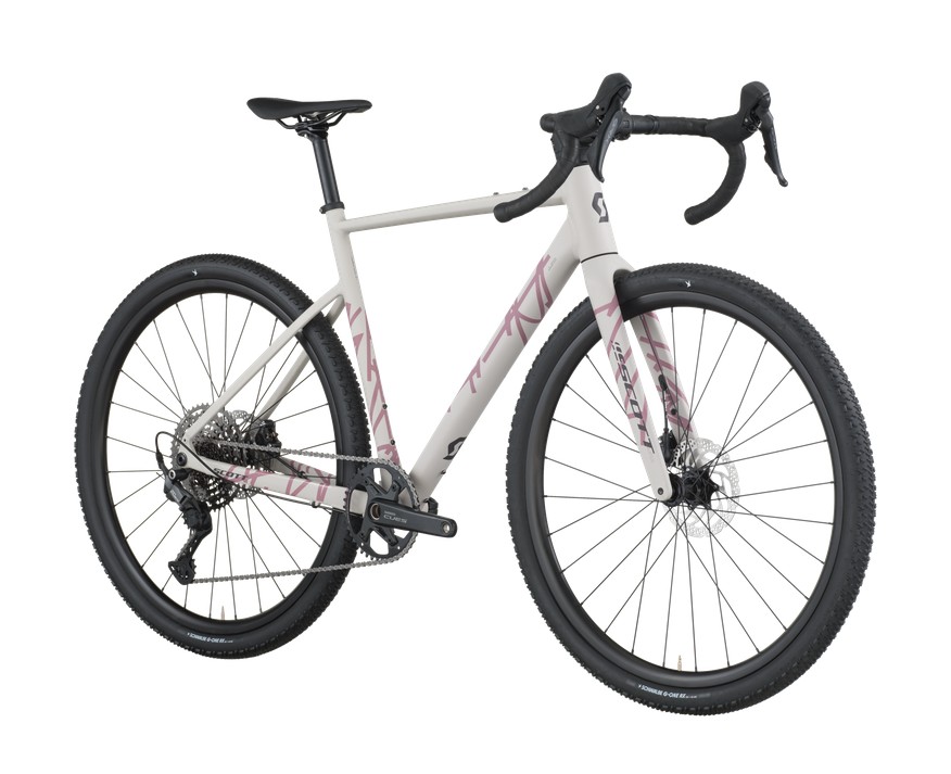 Der hochwertige Aluminiumrahmen mit Scott Gravel Geometrie sorgt für eine ausgewogene, komfortable Sitzposition. Die Speedster Gravel HMF Carbon-Gabel Schluckt Unebenheiten effektiv und sorgt für präzises Lenkverhalten. Breite 700x45C Schwalbe G-One RX Reifen bieten viel Grip und Laufruhe, egal ob trocken, nass oder lose Untergründe.