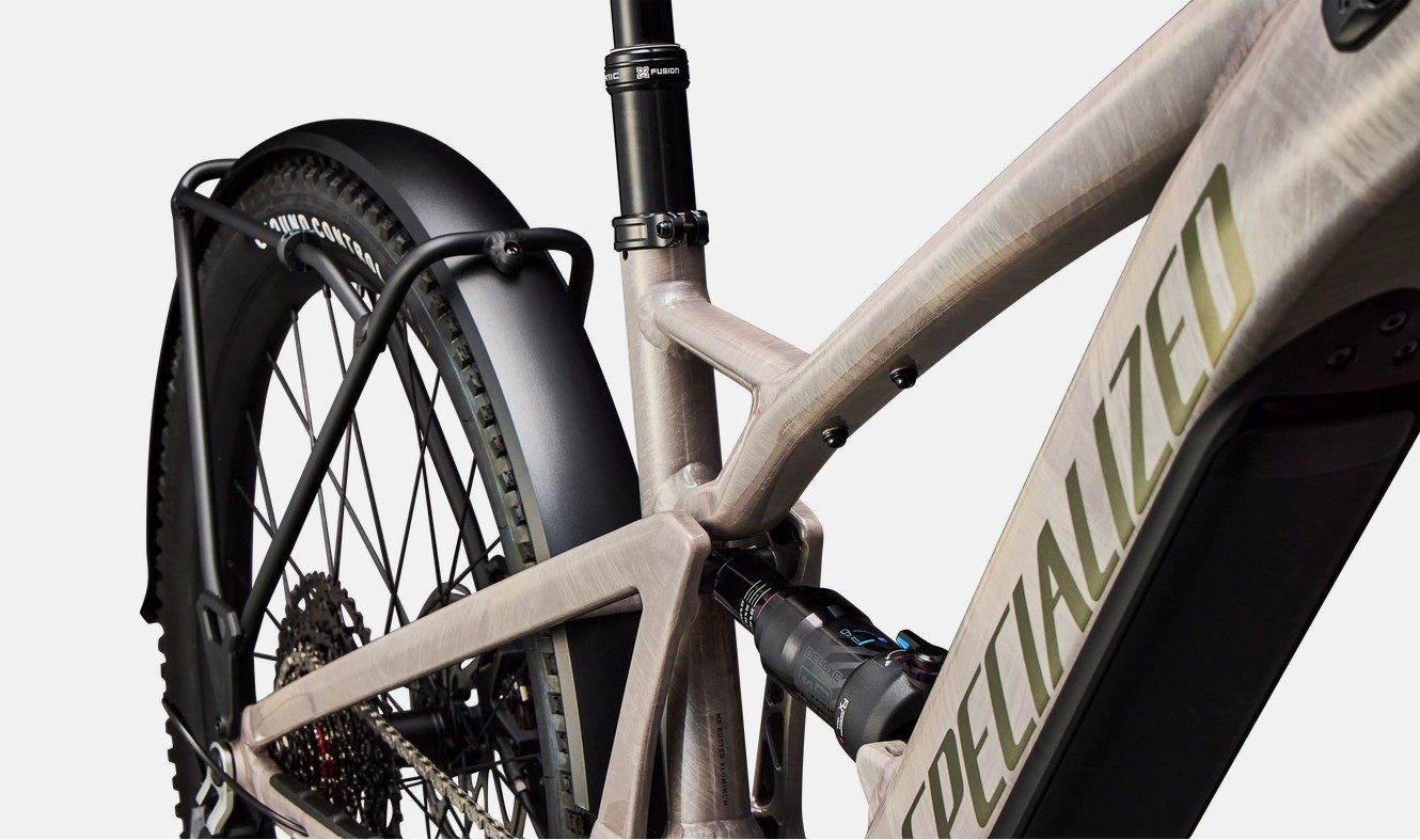Rahmen: E5 Aluminium, vollgefedert, Mullet-Style (M–XL), Motoraufnahme im Tretlager, vollintegrierter & abschließbarer Unterrohrakku, interne Kabelführung, Befestigung für Schloss & Frontgepäckträger