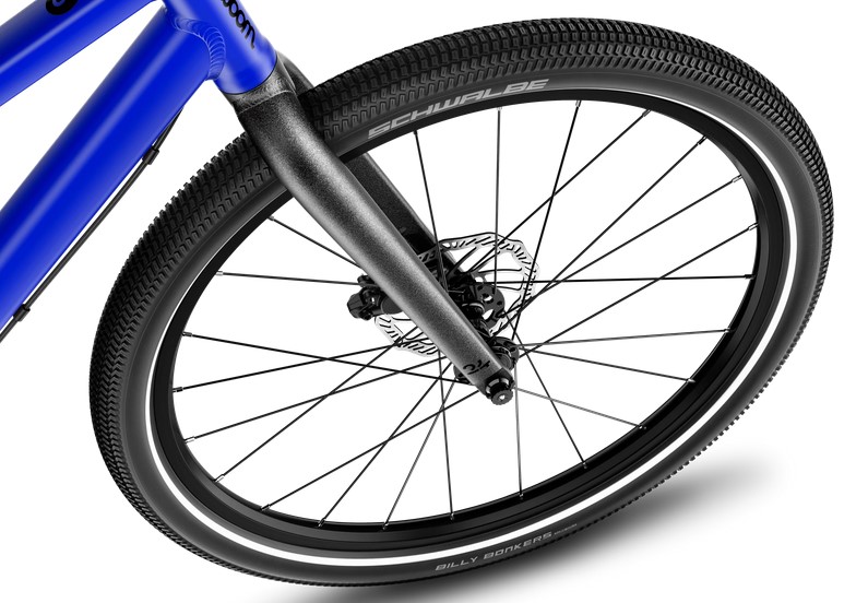 Mit den Schwalbe Billy Bonkers 24 × 2″ Faltreifen ist das Woom ORIGINAL 5 DISC für jedes Terrain geeignet – von der Stadtstraße bis zu unbefestigten Wegen im Aargau, Schaffhausen oder Zürich. Die Reifen bieten exzellenten Grip und hervorragende Fahrqualität, besonders bei wechselnden Wetterbedingungen.
